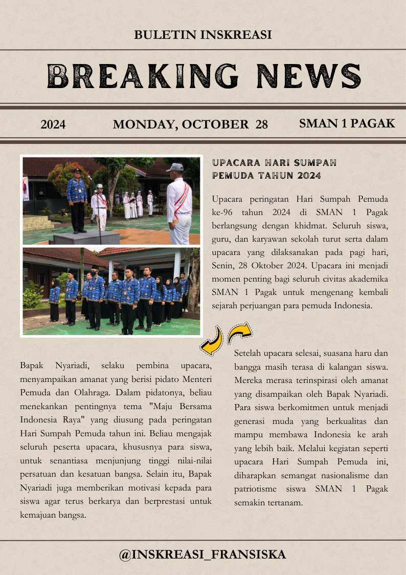 Upacara peringatan Hari Sumpah Pemuda tahun 2024 di SMAN 1 Pagak berlangsung dengan khidmat. Seluruh...