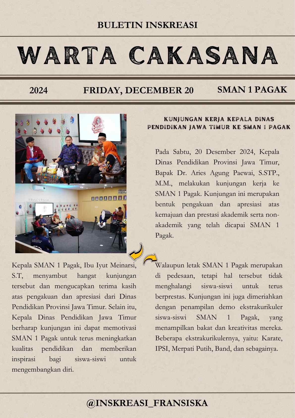 Hari Jumat, 20 Desember 2024 menjadi hari bersejarah bagi SMAN 1 Pagak karena kedatangan tamu istime...