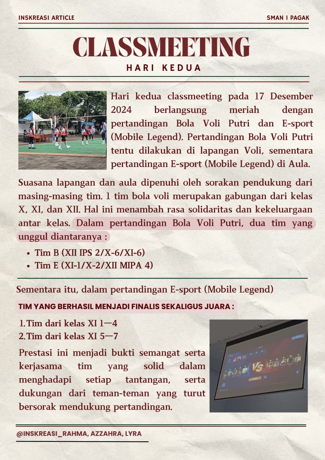 Pelaksanaan classmeet hari kedua di SMAN 1 Pagak dengan pertandingan bola voli putri serta lomba e-S...
