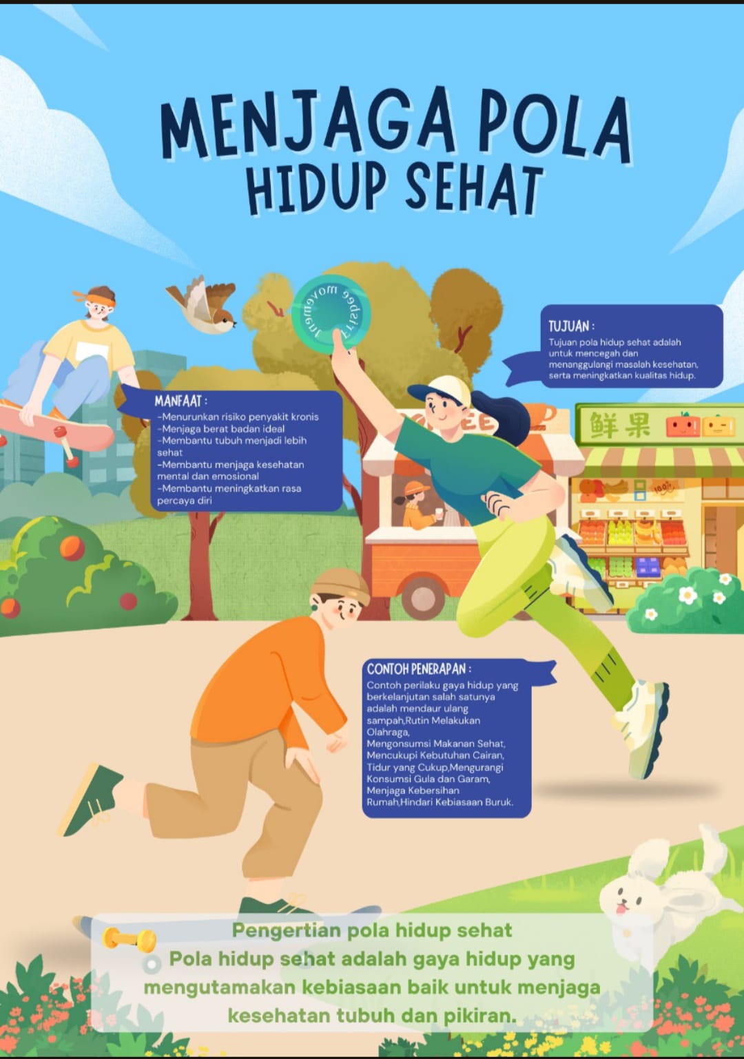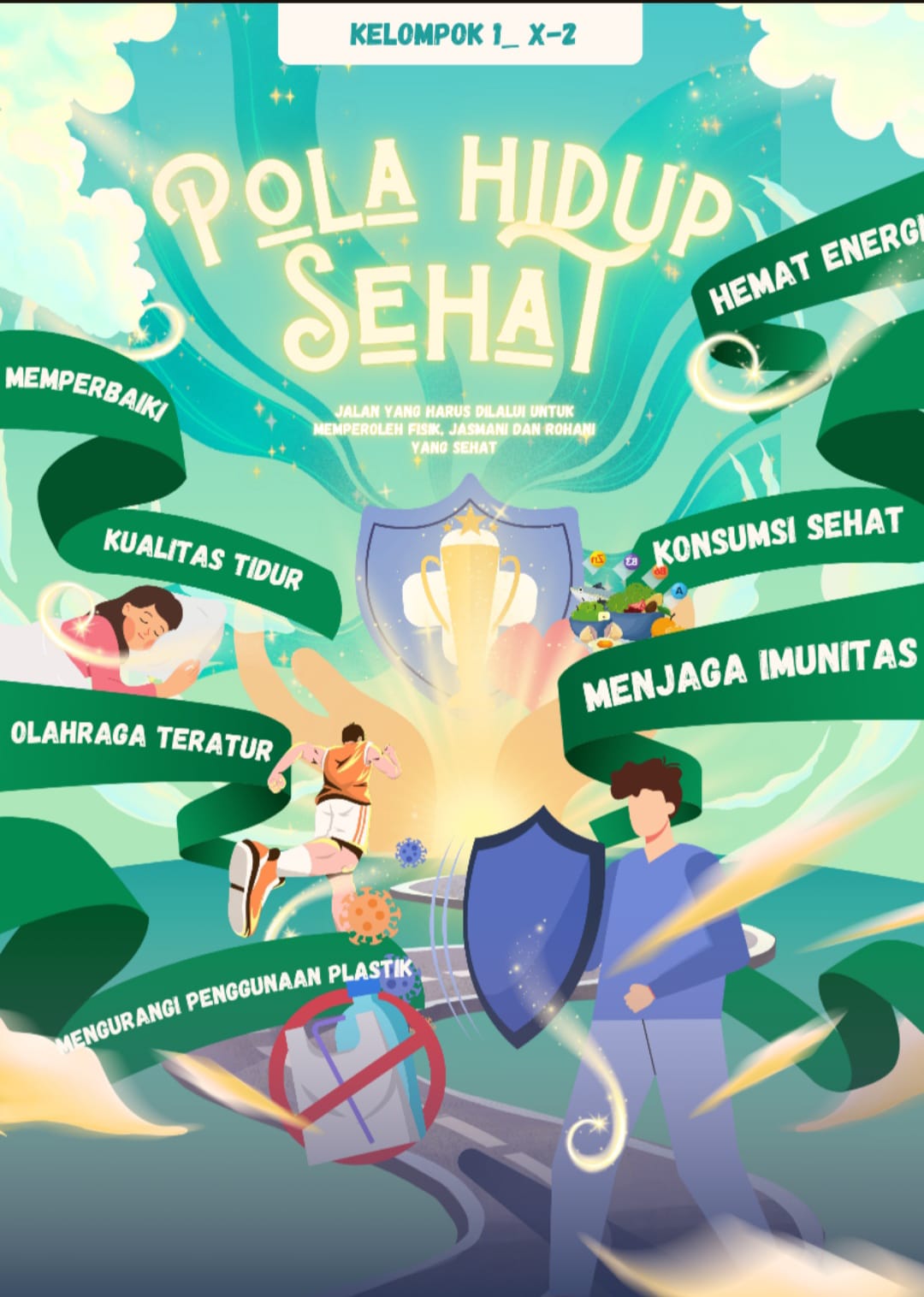 Desain poster digital "Pola Hidup Sehat" karya kelompok 5 kelas X 6