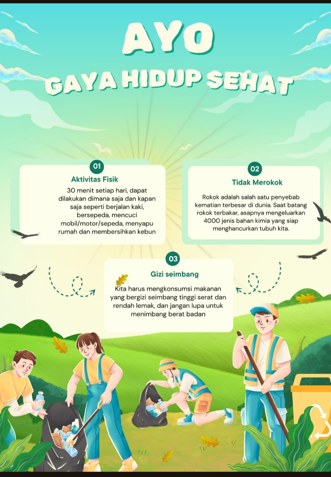 Desain poster digital "Gaya Hidup Sehat" Karya Kelompok 3 Kelas X 7
