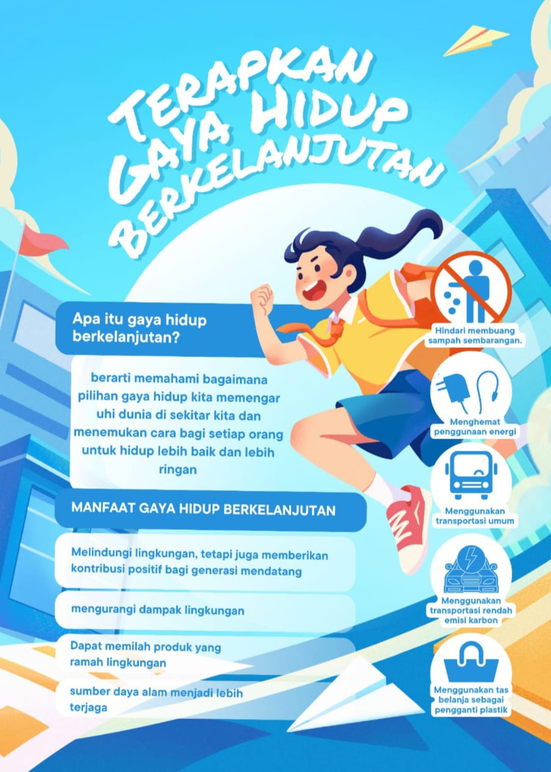 Desain poster digital "Gaya Hidup Berkelanjutan di sekolah" karya Kelompok 3 Kelas X 6