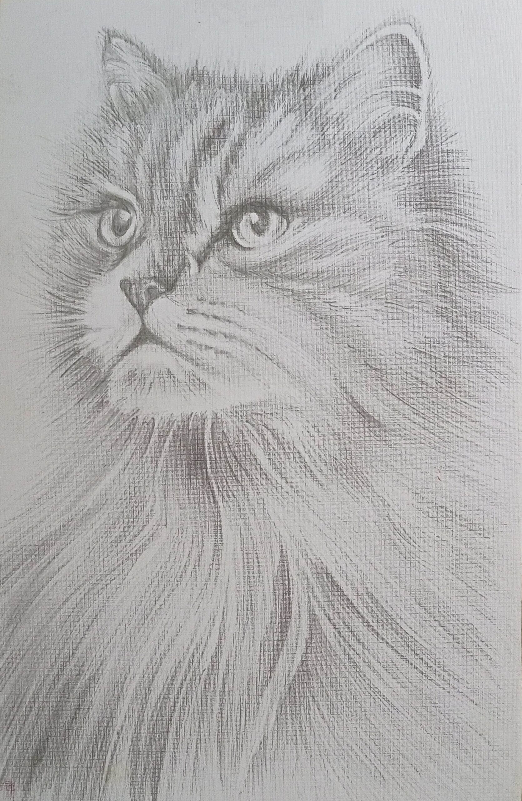 Lukisan tentang kucing yang menggunakan teknik arsir. @inskreasi_Rahma